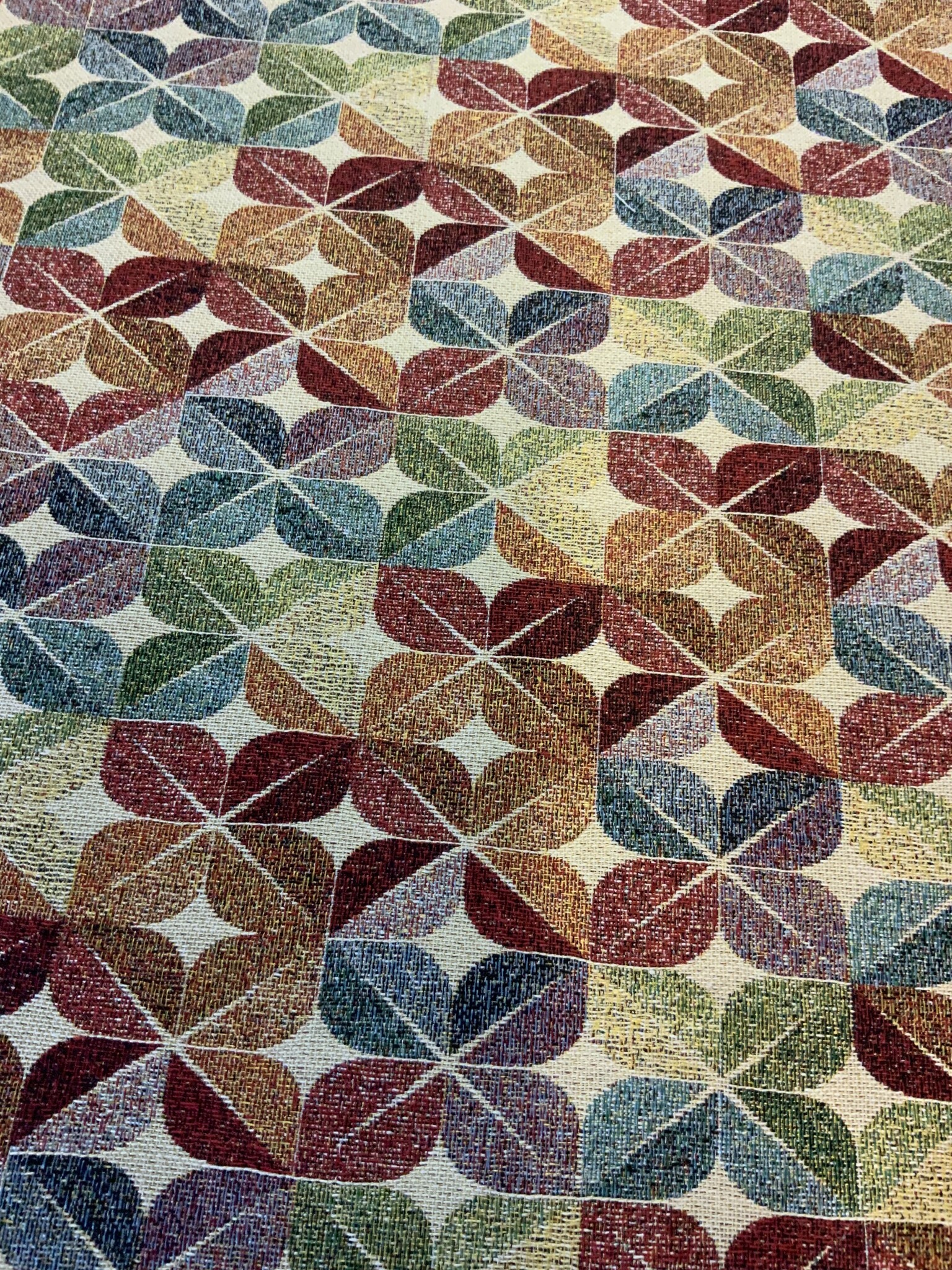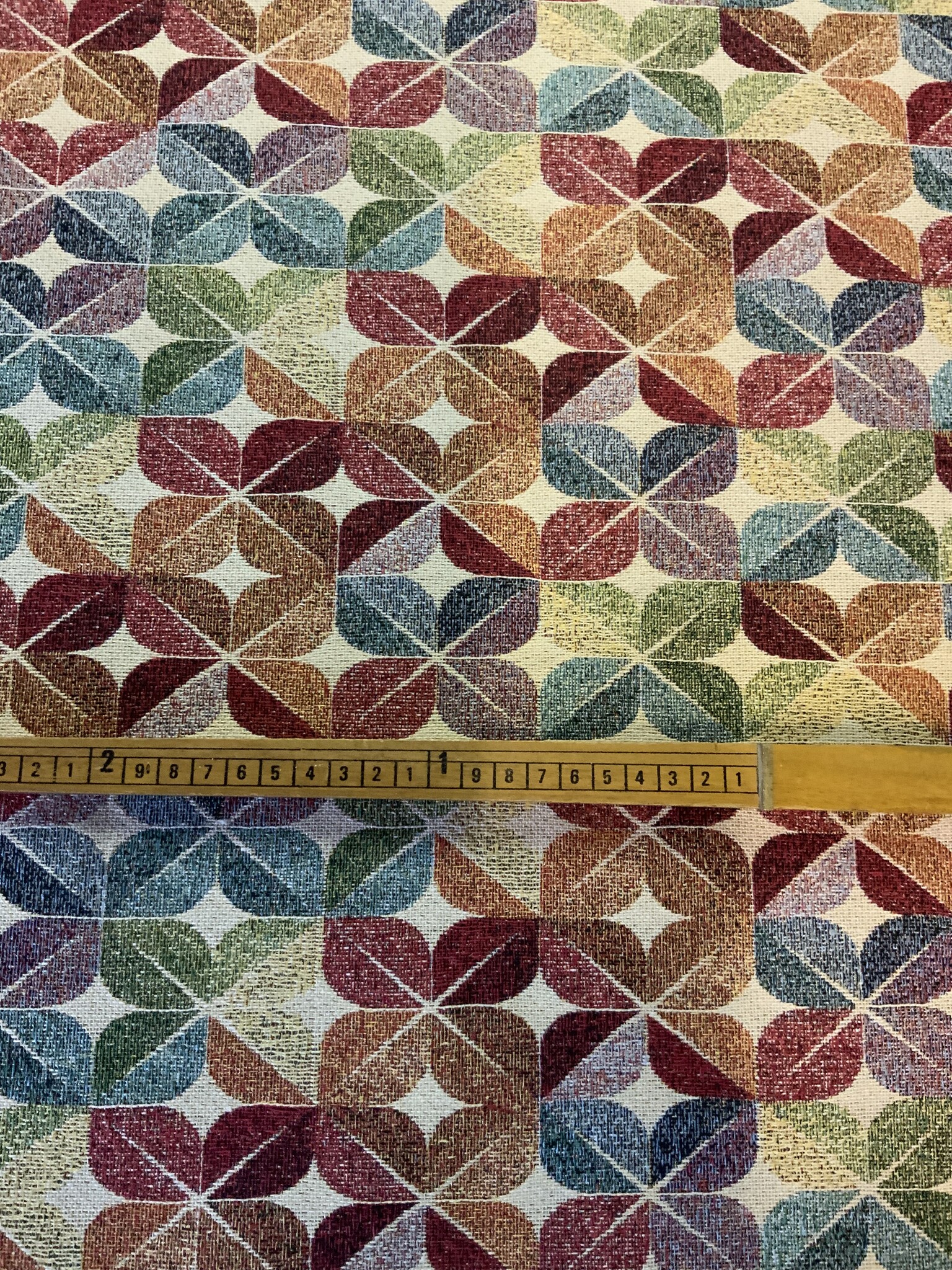 Es ist ein stark gewebter Stoff mit einem gewebten Motiv, der eine spezielle Webtechnik verwendet. Gobelins wurden ursprünglich für Wandbehänge verwendet. Die Vorder- und Rückseite unterscheiden sich in der Farbe, aber das Design ist auf der Rückseite noch intakt. Die Zusammensetzung ist variabel, normalerweise jedoch eine Zusammensetzung aus Baumwolle und Polyester. Die Zugabe von Polyester macht den Stoff stärker. Die Breite beträgt oft 140 cm. Diese Qualität ist bei 30 Grad maschinenwaschbar.