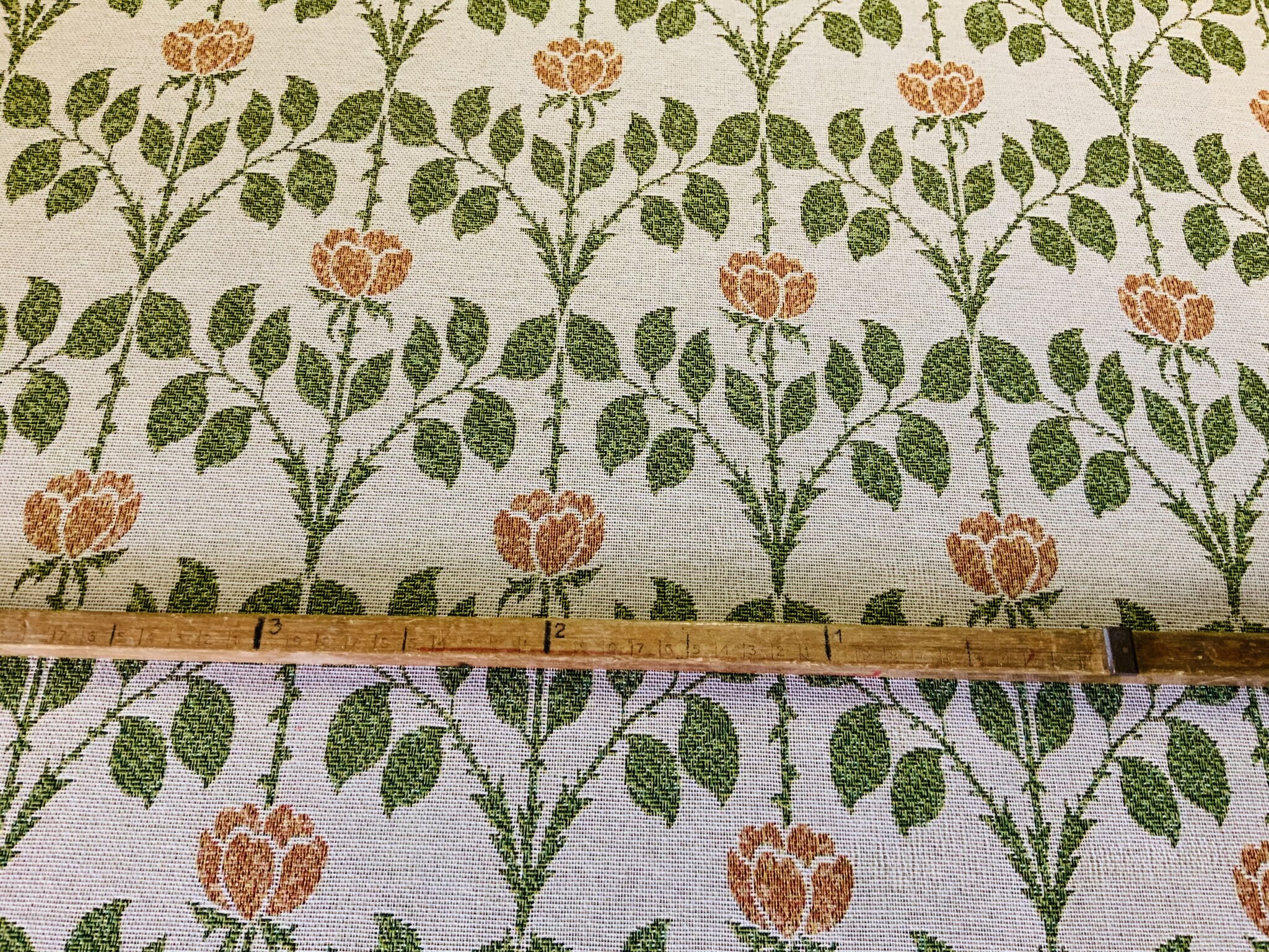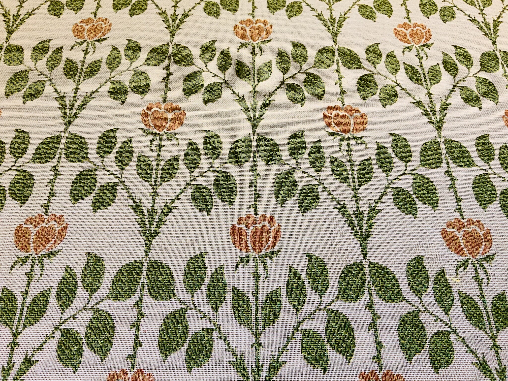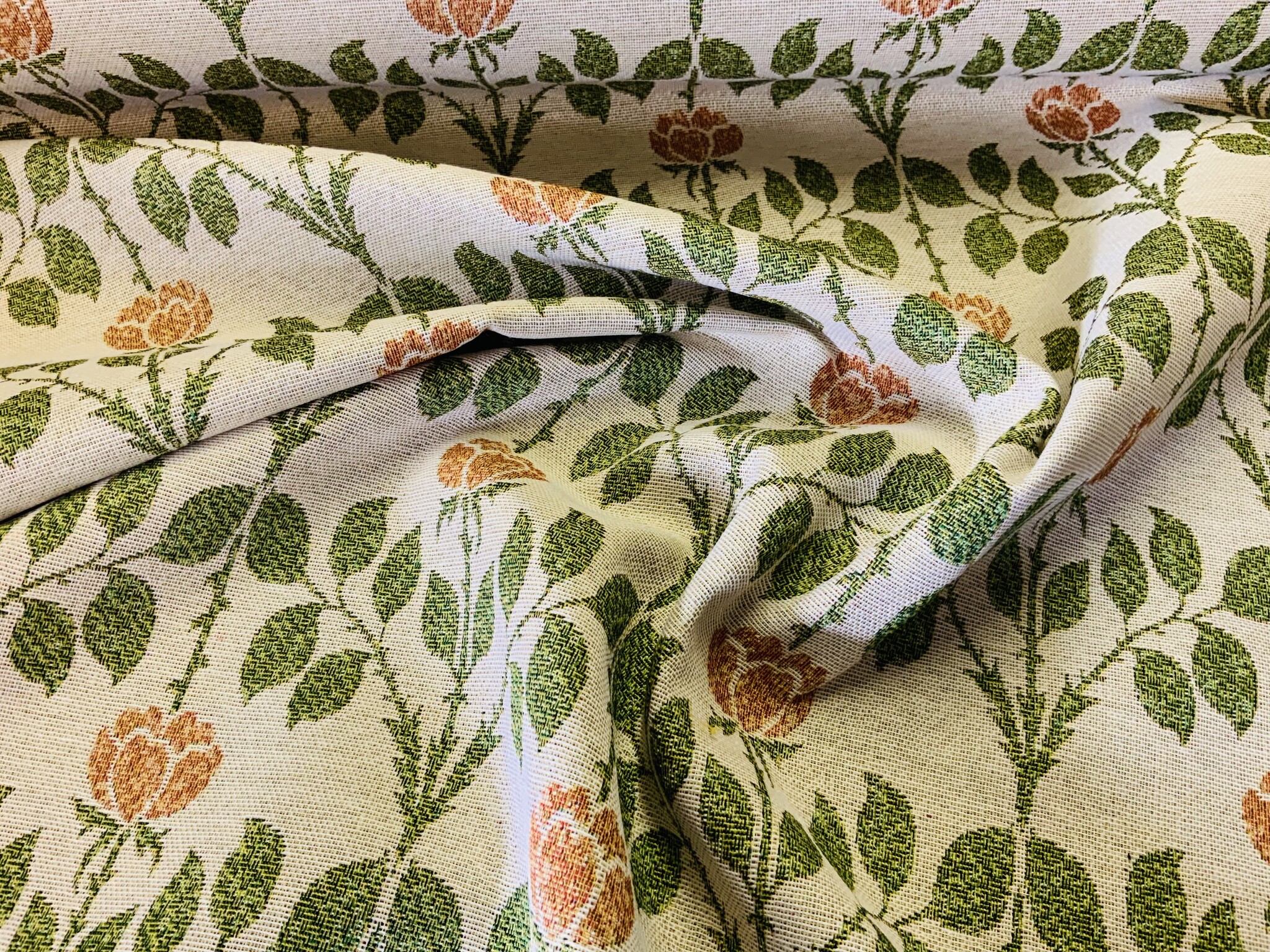 Es ist ein stark gewebter Stoff mit einem gewebten Motiv, der eine spezielle Webtechnik verwendet. Gobelins wurden ursprünglich für Wandbehänge verwendet. Die Vorder- und Rückseite unterscheiden sich in der Farbe, aber das Design ist auf der Rückseite noch intakt. Die Zusammensetzung ist variabel, normalerweise jedoch eine Zusammensetzung aus Baumwolle und Polyester. Die Zugabe von Polyester macht den Stoff stärker. Die Breite beträgt oft 140 cm. Diese Qualität ist bei 30 Grad maschinenwaschbar.