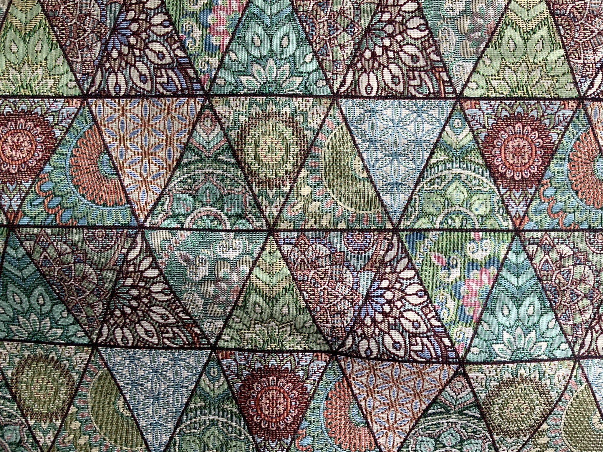 Es ist ein stark gewebter Stoff mit einem gewebten Motiv, der eine spezielle Webtechnik verwendet. Gobelins wurden ursprünglich für Wandbehänge verwendet. Die Vorder- und Rückseite unterscheiden sich in der Farbe, aber das Design ist auf der Rückseite noch intakt. Die Zusammensetzung ist variabel, normalerweise jedoch eine Zusammensetzung aus Baumwolle und Polyester. Die Zugabe von Polyester macht den Stoff stärker. Die Breite beträgt oft 140 cm. Diese Qualität ist bei 30 Grad maschinenwaschbar.
