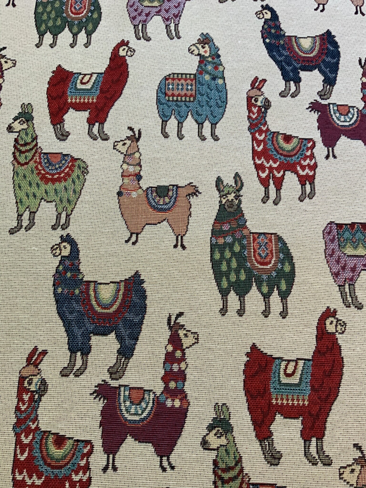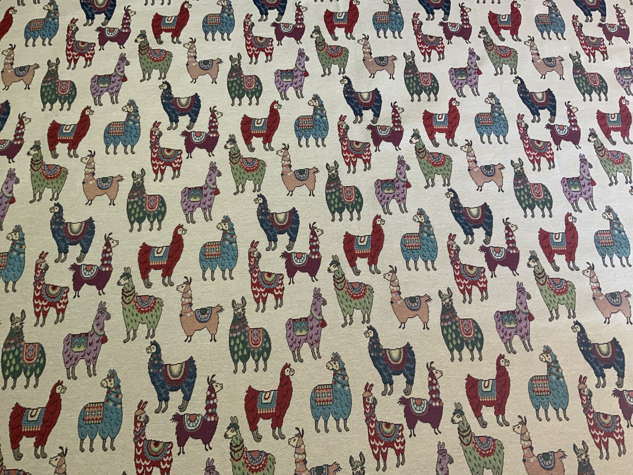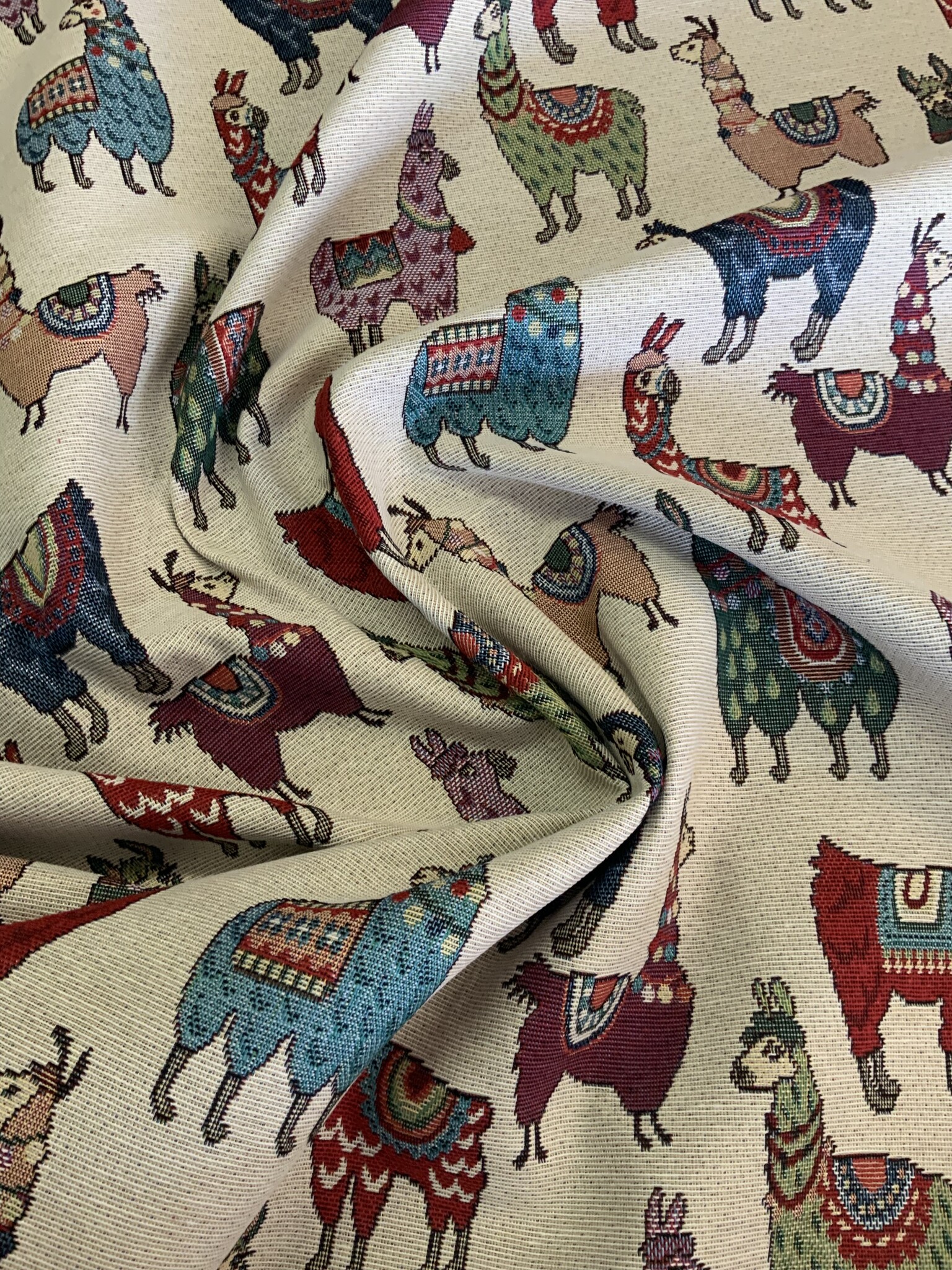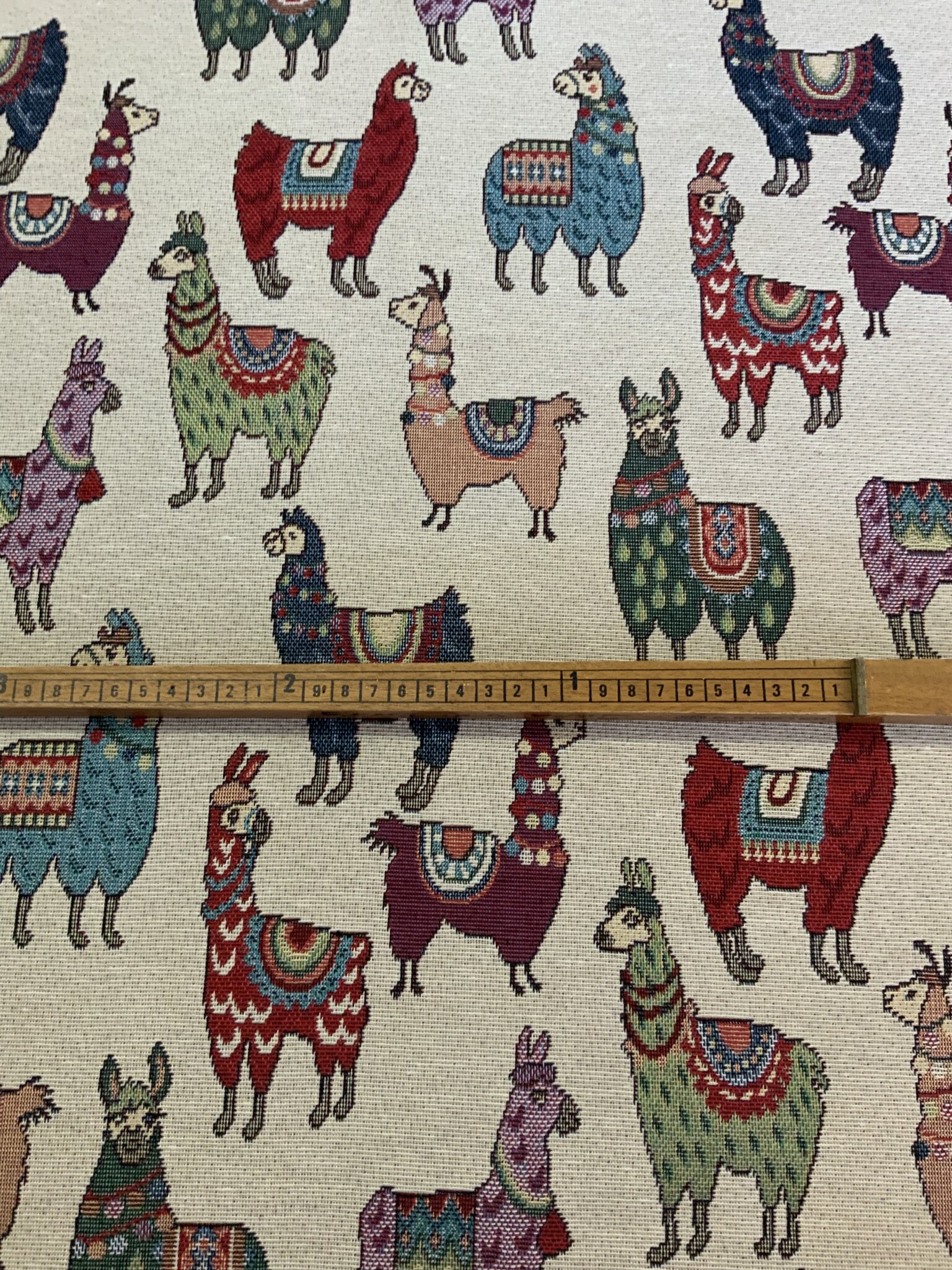 Es ist ein stark gewebter Stoff mit einem gewebten Motiv, der eine spezielle Webtechnik verwendet. Gobelins wurden ursprünglich für Wandbehänge verwendet. Die Vorder- und Rückseite unterscheiden sich in der Farbe, aber das Design ist auf der Rückseite noch intakt. Die Zusammensetzung ist variabel, normalerweise jedoch eine Zusammensetzung aus Baumwolle und Polyester. Die Zugabe von Polyester macht den Stoff stärker. Die Breite beträgt oft 140 cm. Diese Qualität ist bei 30 Grad maschinenwaschbar.