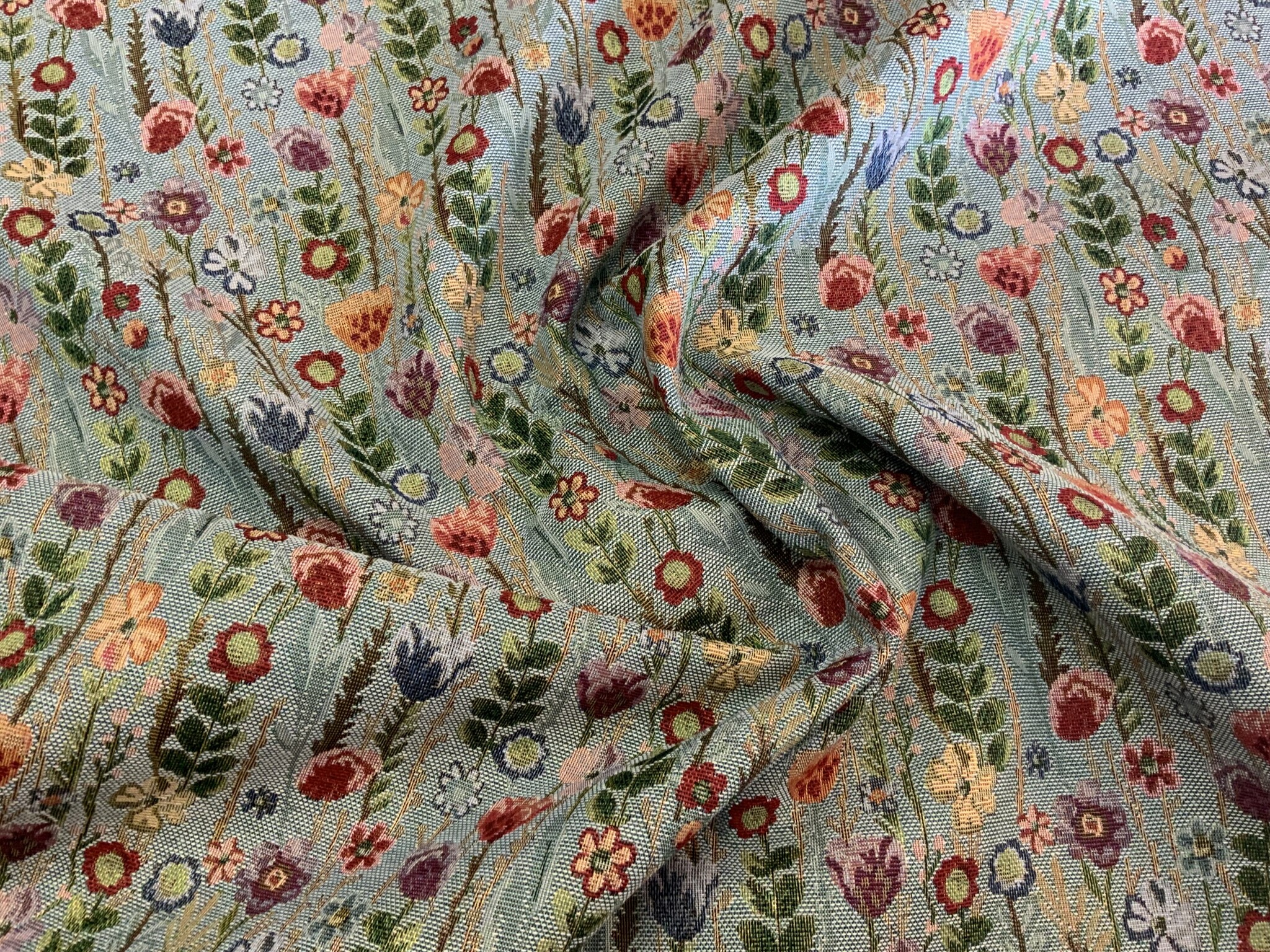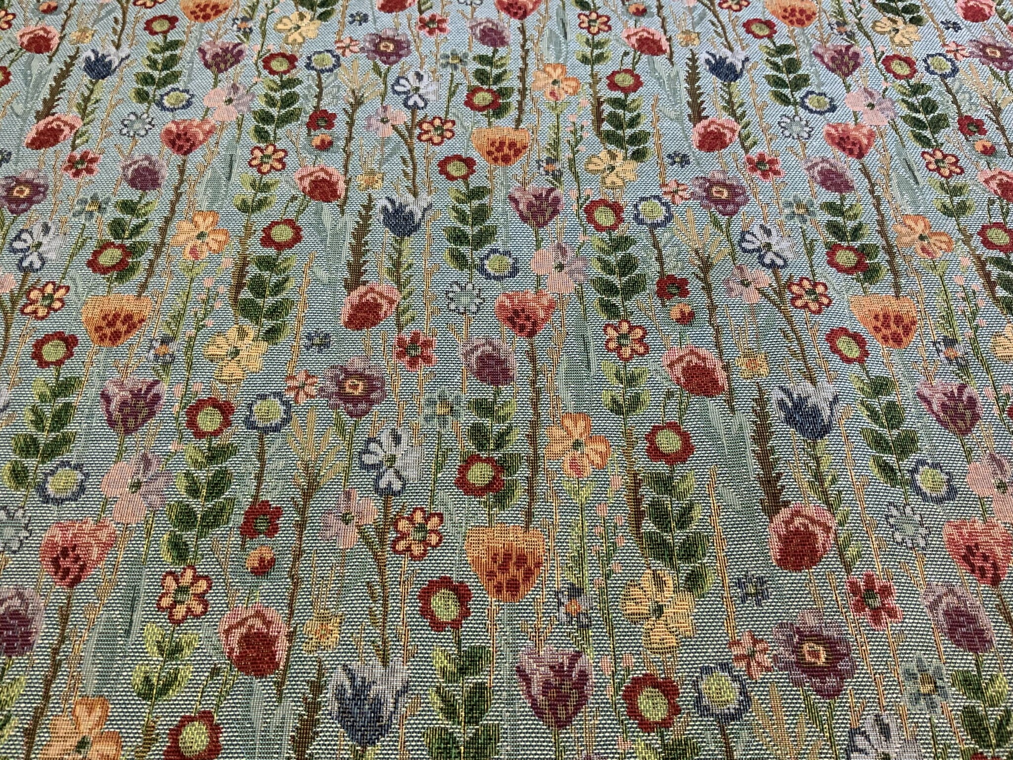 Es ist ein stark gewebter Stoff mit einem gewebten Motiv, der eine spezielle Webtechnik verwendet. Gobelins wurden ursprünglich für Wandbehänge verwendet. Die Vorder- und Rückseite unterscheiden sich in der Farbe, aber das Design ist auf der Rückseite noch intakt. Die Zusammensetzung ist variabel, normalerweise jedoch eine Zusammensetzung aus Baumwolle und Polyester. Die Zugabe von Polyester macht den Stoff stärker. Die Breite beträgt oft 140 cm. Diese Qualität ist bei 30 Grad maschinenwaschbar.